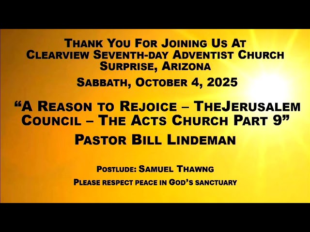 10-04-25 Sermon: “A Reason to Rejoice – The Jerusalem Council – The Acts Church Part 9” by Pastor Bill Lindeman. Special music is by Melissa...